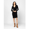 Női finom kötött ruha, nőies vonalvezetéssel, térd fölött érő hosszal, v-nyakkivágással, bordás fodros nyakkal és kézelővel, kis fém márkajelzéssel az eleje alján. Anyaga: 75% viszkóz, 25% nylon, kötött anyag. A modell 175 cm magas és S-es méretet visel. T54015W2503