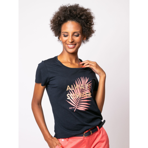 Heavy Tools Női Póló Mirosas23 C4S23029NA. Színe: NAVYEz a női rövid ujjú póló ragyogó színeivel, kerek nyakával, nyomott dekorációjával és kis márkajelzésével minden alkaton remekül mutat. Kényelmes, pamut keverék anyagból készült, ideális akár egész napos viseletre is. Anyaga: 50% pamut, 50% modal, single jersey. A modell 175 cm magas és M-es méretet visel. C4S23029NA