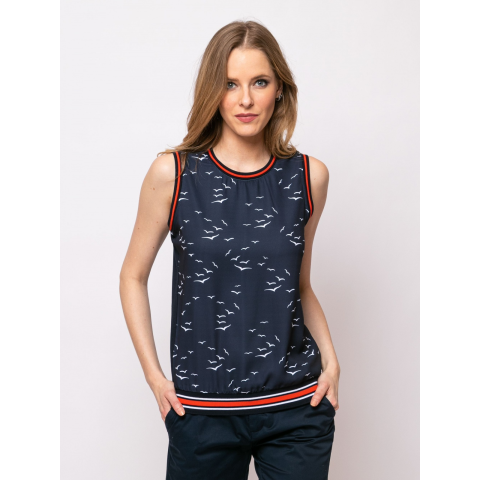 Heavy Tools Női Női Felső Boroka22 C5S22196BI. Színe: birdsA legegyszerűbb hétköznapi szettet is pillanatok alatt egyedivé varázsolja ez a női ujjatlan felső. Nyaka, karöltője és alja csíkos passzéval szegett. Háta kényelmes, pamut keverék anyagból, eleje lágy esésű poliészter selyemből készült. Elején könnyed nőies mintával, hátán apró márkajelzéssel az elegánsabb események kiegészítője is lehet. Anyaga: eleje: 100%