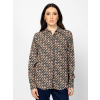 Női ingblúz bővebb szabással, dekoratív állógallérral, rejtett gombolással, gombos kézelővel, könnyen kezelhető viszkóz anyagból, sikkes mintákkal, kis fém márkajelzéssel a hátán. Anyaga: 100% viszkóz. A modell 175 cm magas és S-es méretet visel. T40026W2502