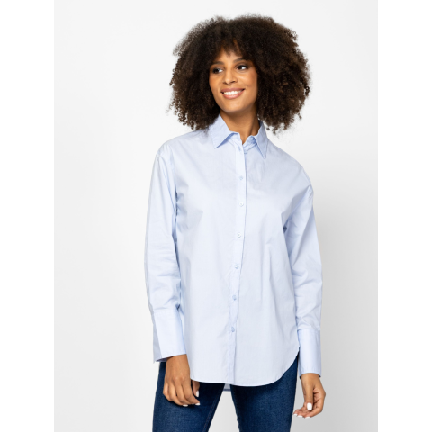 Női ing, egyenes, bővebb szabással, klasszikus színekben, lekerekített aljjal, kis fém márkajelzéssel a hátán, tiszta pamut anyagból. Anyaga: 100% pamut, puplin. A modell 175 cm magas és S-es méretet visel. T40025W2502