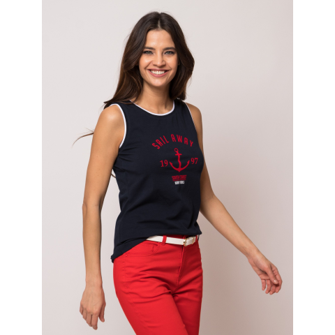 Heavy Tools Női Felső Banka23 C5S23191NA. Színe: navyEz a női ujjatlan felső kerek nyakával és klasszikus vonalvezetésével időtlen, sportos eleganciát kölcsönöz minden megjelenéshez. Kényelmes pamut keverék anyagból készült. Klasszikus csíkozásával és színeivel, finoman csíkozott nyakával és karöltőjével és nagy márkajelzésével az elején alapdarab a ruhatárunkban. Anyaga: 95% pamut, 5% elasztán. A modell 175 cm magas é