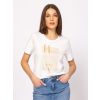 Heavy Tools Női Póló Mefars25 T17052S2502. Színe: ecru Női rövid ujjú póló egyenes szabással, kerek nyakkivágással, kényelmes, pamut keverék anyagból, elején nyomott mintával, kövekkel és márkajelzéssel. Anyaga: 50% pamut, 50% modal, single jersey. A modell 175 cm magas és S-es méretet visel. T17052S2502