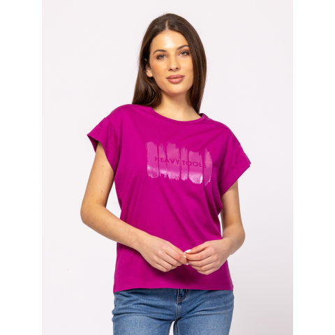 Heavy Tools Női Póló Minoskas25 T17053S2504. Színe: orchid Női rövid ujjú póló, a egyenes szabással, ejtett vállal, hajtókás ujjal, tiszta pamut anyagból, elején nyomott márkajelzéssel. Anyaga: 100% pamut, single jersey. A modell 175 cm magas és S-es méretet visel. T17053S2504