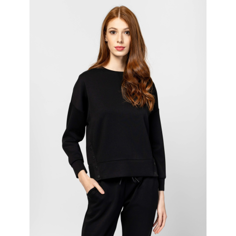 Heavy Tools Női Pulóver Daliw25 T02033W2501. Színe: black Női pulóver, bővebb szabással, kerek nyakkal, ejtett vállal, saját anyagából készült aljjal és kézelővel, könnyen kezelhető anyagból, logózott patentokkal az elején, kis nyomott márkajelzéssel a hátán. Anyaga: 56% modal, 38% poliészter, 6% elasztán. A modell 175 cm magas és S-es méretet visel. T02033W2501
