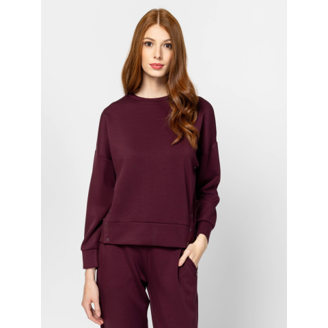 Heavy Tools Női Pulóver Daliw25 T02033W2502. Színe: plum Női pulóver, bővebb szabással, kerek nyakkal, ejtett vállal, saját anyagából készült aljjal és kézelővel, könnyen kezelhető anyagból, logózott patentokkal az elején, kis nyomott márkajelzéssel a hátán. Anyaga: 56% modal, 38% poliészter, 6% elasztán. A modell 175 cm magas és S-es méretet visel. T02033W2502