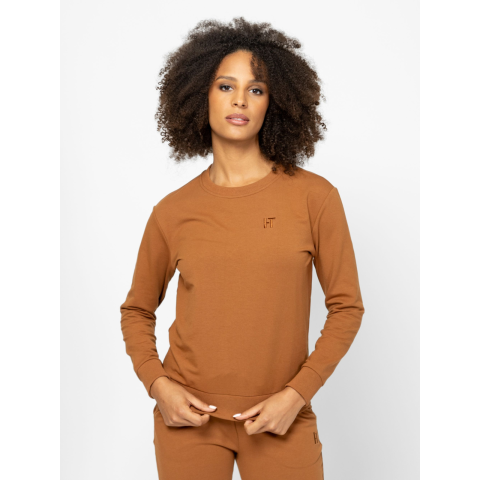Heavy Tools Női Pulóver Danida T02026W2503. Színe: caramel Női pulóver, klasszikus vonalvezetéssel, kerek nyakkal, bordás passzés aljjal és kézelővel, magas pamut tartalmú anyagból, elején kis hímzett márkajelzéssel. Anyaga: 58% pamut, 38% poliészter, 4% elasztán, belül enyhén bolyhozott fleece. A modell 175 cm magas és S-es méretet visel. T02026W2503