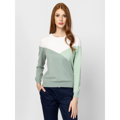 Heavy Tools Női Pulóver Hepnaw25 T53043W2502. Színe: SAGE Női finom kötött pulóver, egyenes szabással, kerek nyakkal, geometrikus mintával, kis fém márkajelzéssel az eleje alján. Anyaga: 50% viszkóz, 30% poliészter, 20% nylon, kötött anyag. A modell 175 cm magas és S-es méretet visel. T53043W2502