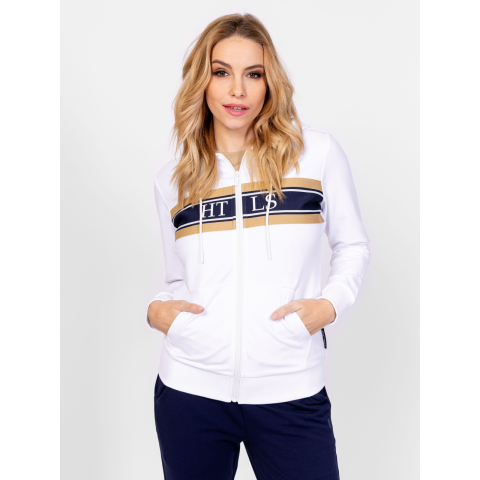 Női kapucnis pulóver, testhez álló fazonnal, cipzáros záródással, bordás passzés aljjal és kézelővel, egyenes zsebekkel, magas pamut tartalmú anyagból, nagy márkajelzéssel az elején. Válaszd hozzá ZARIVAW25 nadrágunkat! Anyaga: 58% pamut, 38% poliészter, 4% elasztán, belül enyhén bolyhozott fleece. A modell 175 cm magas és S-es méretet visel. T04023W2501