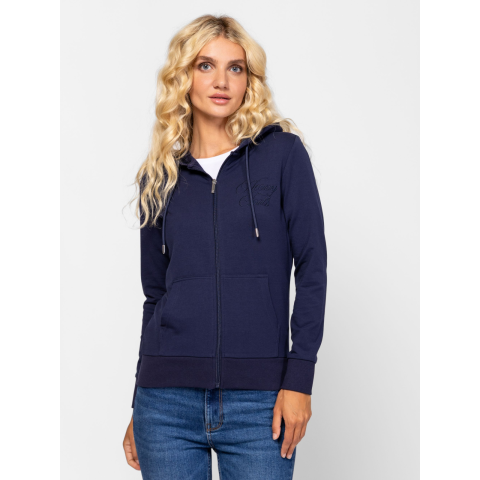 Női kapucnis pulóver, testhez álló fazonnal, bordás passzés aljjal és kézelővel, cipzáros záródással, kenguruzsebbel, brand színekben, magas pamut tartalmú anyagból, kis hímzett márkajelzéssel az elején. Válaszd hozzá ZARIVAW25, vagy ZYA nadrágunkat az új kollekcióból! Anyaga: 58% pamut, 38% poliészter, 4% elasztán, belül enyhén bolyhozott fleece. A modell 175 cm magas és S-es méretet visel. T04031W2502
