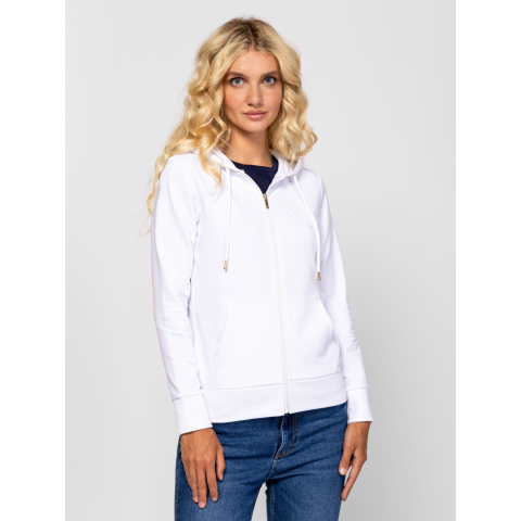 Női kapucnis pulóver, testhez álló fazonnal, bordás passzés aljjal és kézelővel, cipzáros záródással, kenguruzsebbel, brand színekben, magas pamut tartalmú anyagból, kis hímzett márkajelzéssel az elején. Válaszd hozzá ZARIVAW25, vagy ZYA nadrágunkat az új kollekcióból! Anyaga: 58% pamut, 38% poliészter, 4% elasztán, belül enyhén bolyhozott fleece. A modell 175 cm magas és S-es méretet visel. T04031W2503