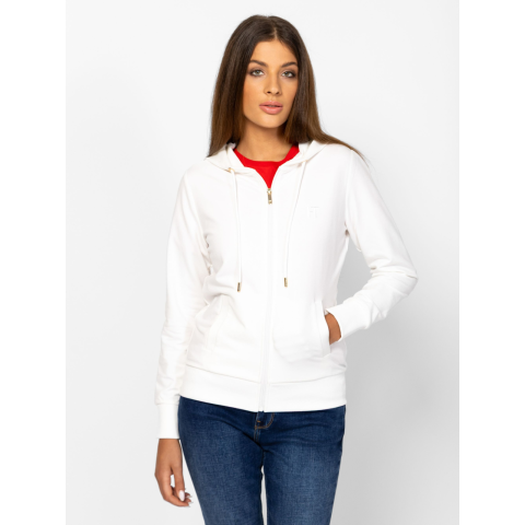 Heavy Tools Női Pulóver Serka T04032W2501. Színe: ecru Női cipzáras, kapucnis pulóver, testhez álló fazonnal, bordás passzés aljjal és kézelővel, egyenes zsebekkel, magas pamut tartalmú anyagból, kis hímzett márkajelzéssel az elején. Anyaga: 58% pamut, 38% poliészter, 4% elasztán, french terry. A modell 175 cm magas és S-es méretet visel. T04032W2501