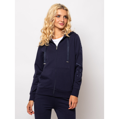 Heavy Tools Női Pulóver Silvi24 T04012W2402. Színe: navy Női cipzáras, kapucnis pulóver, testhez álló fazonnal, bordás passzés aljjal és kézelővel, kenguruzsebbel, ragyogó színekben, magas pamut tartalmú anyagból, nagy nyomott márkajelzéssel az ujján. Válaszd hozzá ZARIVA24 nadrágunkat! Anyaga: 58% pamut, 38% poliészter, 4% elasztán, french terry. A modell 175 cm magas és S-es méretet visel. T04012W2402