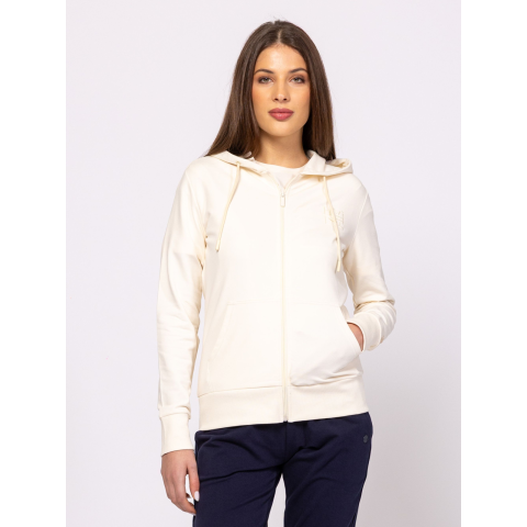 Heavy Tools Női Pulóver Solida T04014S2502. Színe: ivory Női cipzáras, kapucnis pulóver, testhez álló fazonnal, bordás passzés aljjal és kézelővel, kenguruzsebbel, magas pamut tartalmú anyagból, kis márkajelzéssel az elején és az ujján. Válaszd hozzá ZOZETTAS25 nadrágunkat! Anyaga: 95% pamut, 5% elasztán, french terry. A modell 175 cm magas és S-es méretet visel. T04014S2502