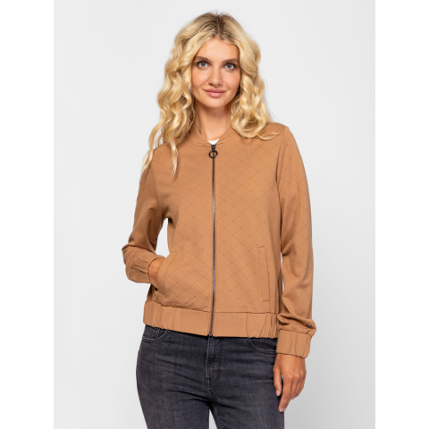 Női, állógalléros felső, cipzáros záródással, kényelmes szabással, álló gallérral, egyenes zsebekkel, gumírozott aljjal és kézelővel, logó mintával, ujján kis fém márkajelzéssel, viszkózban gazdag, elasztikus anyagból. Viseld hozzá ZAMORKAW25 nadrágunkat az új kollekcióból. Anyaga: 63% viszkóz, 32% nylon, 5% elasztán. A modell 175 cm magas és S-es méretet visel. T06018W2503