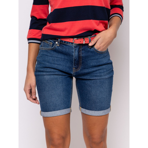 Ez a női farmer bermuda a nyári napok elmaradhatatlan darabja! A klasszikus farmer színek sportosan elegáns megjelenést biztosítanak. Magas pamut tartalmú, rugalmas anyagával, zsebeivel és kis márkajelzésével nagyszerű választás mind a hétköznapokra, mind pedig egy laza hétvégi programhoz. Anyaga: 91% pamut, 7% poliészter, 2% elasztán, farmer. A modell 175 cm magas és S-es méretet visel. Az öv nem tartozéka a nadrágnak. O8S24562DA