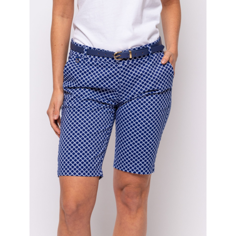 Ez a női bermuda a nyári napok elmaradhatatlan darabja! A klasszikus színek és izgalmas minták sportosan elegáns megjelenést biztosítanak. Magas pamut tartalmú, rugalmas anyaga, svéd zsebei, finom kidolgozása és kis márkajelzése nagyszerű választás mind a hétköznapokra, mind pedig egy laza hétvégi programhoz. Anyaga: 97% pamut, 3% elasztán, twill. A modell 175 cm magas és S-es méretet visel. Az öv nem tartozéka a nadrágnak. E6S24560AZ