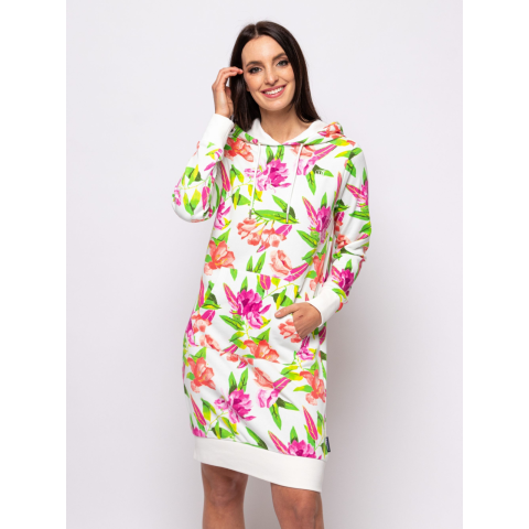 Ez a női kapucnis ruha ragyogó színeivel és mintájával, hímzett márkajelzésével és enyhén karcsúsított szabásával minden alkaton pompásan mutat. Rugalmasságával és magas pamut tartalmával igazán komfortos darab a tavaszi, kora nyári időszakban. Nagyszerű választás a rohanós hétköznapokra, sportos pillanatokra. Anyaga: 57% pamut, 43% poliészter, french terry. A modell 175 cm magas és S-es méretet visel. O4S24661TP