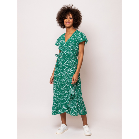 Heavy Tools Női Ruha/overál Vafarta O5S23455GN. Színe: gardenA romantikus nyári pillanatok tökéletes kiegészítője ez a női ruha. Az enyhén karcsúsított, átlapolt szabás minden alkaton jól mutat. Rövid, fodros ujja, térd alá érő hossza, fodros szoknyarésze, trendi, apró virágos mintái és klasszikus színe, kis márkajelzése kedvenceid közé helyezi ezt a ruhát. A lágy esésű viszkóz anyag kellemes érzetet biztosít akár a fo