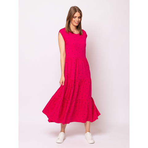 Heavy Tools Női Ruha/overál Vaista E9S23474FH. Színe: fuchsiaEz a hosszú ruha nem hiányozhat nyári gardróbodból! Kényelmes, mégis nőies szabásával, kerek nyakával, ráncolt szoknya részével, kis márkajelzésével, izgalmas színeivel és pöttyös mintájával sikket és eleganciát csempész nyári szettjeidbe. A lágy esésű pamut keverék anyag kellemes érzetet biztosít akár a forró nyári napokon is. Tökéletes választás a csino
