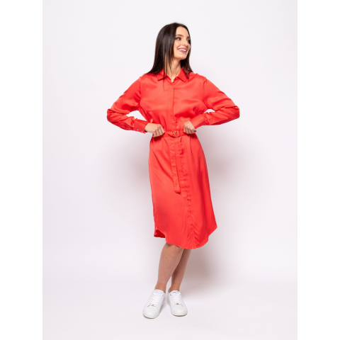 Ez az egyenes szabású női szatén ingruha nem hiányozhat tavaszi/nyári gardróbodból! Lágy esésű, prémium minőségű anyagával, dekoratív gallér megoldásával, rejtett gombolásával, övvel állítható derekával, ragyogó színeivel és kis, fém márkajelzésével egyedi megjelenést biztosít mindenki számára. A könnyű viszkóz/rayon anyag kellemes érzetet biztosít akár egész napos viselet során is. Tökéletes választás az elegánsabb eseményekre. Anyaga: 53% vis