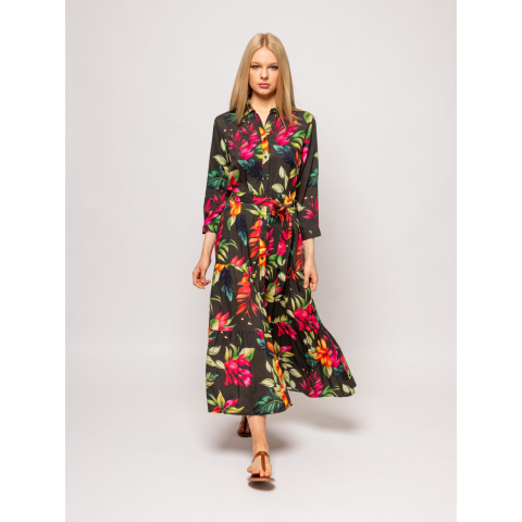 Heavy Tools Női Ruha/overál Valida T50016S2501. Színe: BOTANIC Női hosszú ingruha, egyenes szabással, 3/4-es ujja hosszával, végig gombos záródással, övvel állítható derékkal, ráncolt szoknya résszel, izgalmas mintákkal, könnyen kezelhető viszkóz anyagból, kis fém márkajelzéssel a hátán. Anyaga: 100% viszkóz. A modell 175 cm magas és S-es méretet visel. T50016S2501