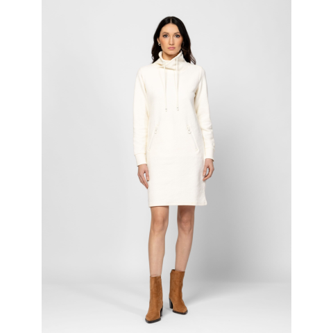 Női ruha, kényelmes, enyhén karcsúsított szabással, geometrikus mintával, cipzáros zsebekkel, magasított, húzózsinóros nyakkal, kis márkajelzéssel az ujja alján. Magas pamuttartalmú, könnyen kezelhető anyagból. Anyaga: 50% pamut, 50% poliészter. A modell 175 cm magas és S-es méretet visel. T12023W2502
