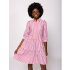 Heavy Tools Női Ruha/overál Vany T50011S2501. Színe: striped Női ingruha, dekoratív gallér megoldással, kényelmes szabással, ráncolt, bő szoknyarésszel, háromnegyedes ujjal, térdig érő hosszal. Anyaga: 100% pamut poplin. A modell 175 cm magas és S-es méretet visel. T50011S2501