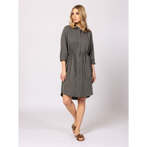 Heavy Tools Női Ruha/overál Villach T50013S2501. Színe: olive Női ingruha, egyenes szabással, 3/4-es ujja hosszal, rejtett gombos záródással, állítható derékkal, térd feletti hosszal, kis fém márkajelzéssel a hátán. Anyaga: 92% poliészter, 8% elasztán. A modell 175 cm magas és S-es méretet visel. T50013S2501