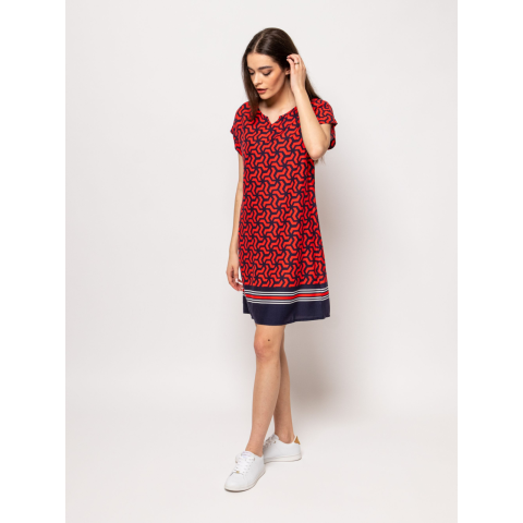 Heavy Tools Női Ruha/overál Vimli T50024S2501. Színe: geometric Női rövid ujjú ruha, kerek nyakkal, ejtett vállal, hajtókás ujjal, térdig érő, egyenes szabással, izgalmas mintával. Anyaga: 100% viszkóz. A modell 175 cm magas és S-es méretet visel. T50024S2501