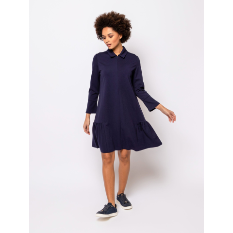 Heavy Tools Női Ruha/overál Vister T12002W2401. Színe: navy Női A-vonalú ruha, térdig érő hosszal, elején rejtett cipzárral, dekoratív gallérral, kis fém márkajelzéssel a hátán. Anyaga: 63% viszkóz, 32% nylon, 5% elasztán. A modell 175 cm magas és S-es méretet visel. T12002W2401