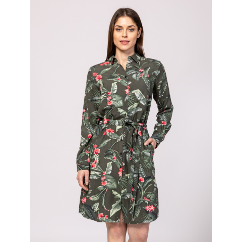 Heavy Tools Női Ruha/overál Vistos25 T50042S2503. Színe: jungle Női ingruha, finoman kidolgozott részletekkel, térd feletti hosszal, elején gombolással, övvel állítható derékbőséggel, kis fém márkajelzéssel a hátán. A könnyen kezelhető trendi, mintás viszkóz anyag megfelelő kényelmet biztosít akár egész napos viselet közben is. Anyaga: 100% viszkóz. A modell 175 cm magas és S-es méretet visel. T50042S2503