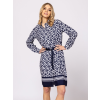 Heavy Tools Női Ruha/overál Vivions25 T50014S2502. Színe: triangle Női ingruha, egyenes szabással, térd feletti hosszal, dekoratív gallér megoldással, gombolással, övvel állítható derékkal, izgalmas mintákkal, könnyen kezelhető anyagból, kis fém márkajelzéssel a hátán. Anyaga: 100% viszkóz. A modell 175 cm magas és S-es méretet visel. T50014S2502
