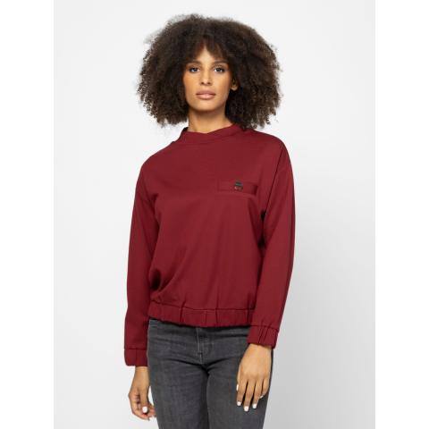 Női pulóver, bővebb szabással, átlapolt álló gallérral, ejtett vállakkal, gumírozott aljjal és kézelővel, eleje mell részen díszzsebbel, magas viszkóz tartalmú anyagból, logózott gombbal a zseben és kis fém márkajezéssel a hátán. Viseld hozzá NERDA szoknyánkat, vagy ZAMORKAW25 nadrágunkat az új kollekcióból. Anyaga: 63% viszkóz, 32% nylon, 5% elasztán. A modell 175 cm magas és S-es méretet visel. T02021W2501
