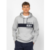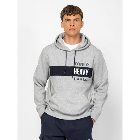 Férfi bebújós, kapucnis pulóver, sportos szabással, kenguruzsebbel, bordás passzés kézelővel és aljjal, nyomott márkajelzéssel az elején, zsebén szövött címkével. Anyaga: 80% pamut, 20% poliészter, belül bolyhozott fleece. A modell 188 cm magas és L-es méretet visel. T03039W2504