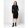 Női ruha, kényelmes, enyhén karcsúsított szabással, elején cipzárral, álló gallérral, húzózsinorral állítható derékkal, szabásvonalba helyezett zsebekkel, elasztikus anyagból, kis fém márkajelzéssel a hátán. Anyaga: 67% viszkóz, 28% nylon, 5% elasztán, twill. A modell 175 cm magas és S-es méretet visel. T12022W2502