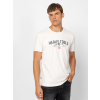 Férfi rövid ujjú póló, egyenes szabással, kerek nyakkal, elején nagy nyomott dekorációval és márkajelzéssel, oldalában szövött címkével. Anyaga: 100% pamut, single jersey. A modell 188 cm magas és L-es méretet visel. T16095W2502
