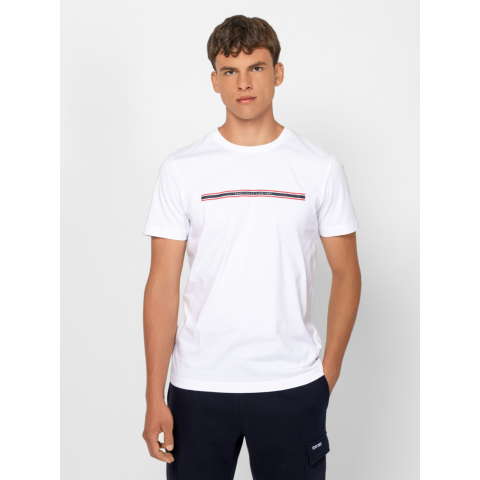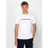 Férfi rövid ujjú póló, egyenes szabással, kerek nyakkal, elején nyomott márkajelzéssel, oldalában szövött címkével. Anyaga: 100% pamut, single jersey. A modell 188 cm magas és L-es méretet visel. T16116W2503