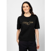 Női rövid ujjú póló egyenes szabással, kerek nyakkivágással, elején hímzett és nyomott márkajelzéssel. Prémium pamut fonalból készült, mely puha tapintású, kellemes, lágy fényű, tartós anyagot eredményez. Anyaga: 100% prémium pamut, jersey. A modell 175 cm magas és S-es méretet visel.  T17063W2503