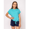 Heavy Tools Rövid Ujjú Póló Póló Morea T75002S2501. Színe: COOLTEAL Lányka rövid ujjú póló kényelmes, bővebb szabással, ejtett vállal, kerek nyakkivágással, megköthető aljjal, trendi csíkozással, oldalában szövött márkajelzéssel. Anyaga: 50% pamut, 50% modal, single jersey. T75002S2501