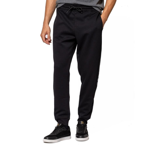 Férfi melegítőnadrág, magas pamut tartalmú anyagból, passzéban végződő egyenes szárral, húzózsinórral állítható, elasztikus derékkal, szabásvonalba helyezett zsebekkelk, oldalbetéten nyomással és márkajelzéssel
