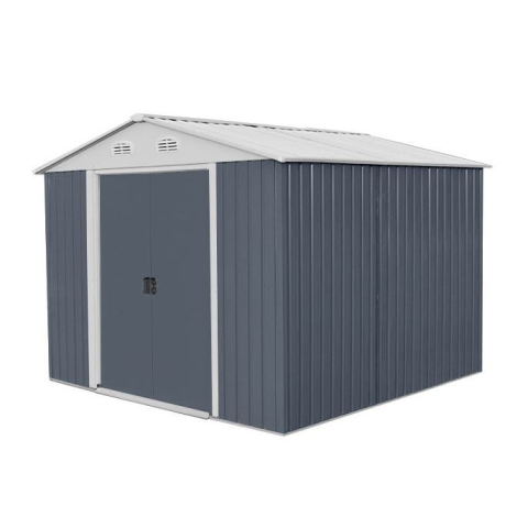 Sötétszürke méretei (hossz./szélesség (ajtó oldala)/magasság): 367/301/214 cm ajtó magassága: 173 cm Alap: 11,04 m2 Lemez vastagsága: 0,3mm Keret vastagsága (horganyzott acél): 0,6mm Minőségi kerti szerszámtároló ház strapabíró szerkezettel, szürke é