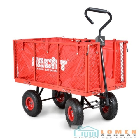 Termék leírásaA HECHT 52184 egy igazán többfunkciós kocsi, amely nem csak a kertben végez sok munkát. A kocsi karosszériája fonott acélvázból áll, a karosszéria hossza 96, szélessége 50, magassága 40 cm. Az ömlesztett anyagok szállításához a kocsit nagy táska formájú ponyvával szállítjuk, amely gyorsan a kocsira rögzíthető.A kocsihoz tartozik még egy akasztókosár is, mely könnyedén az oldalára akasztható. A kosár alkalmas például kisebb szerszámok táro