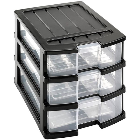 1 kép heidrun Polc 34 × 25 × 23,5 cm, három fiókkal, fekete, műanyag