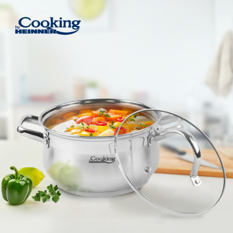 HEINNER Amira 3.6L rozsdamentes acél lábas – Könnyed és stílusos főzés ✨ Ez az elegáns HEINNER Amira lábas hőálló üvegfedővel tökéletes a mindennapi főzéshez. Modern dizájnjával és nagylelkű, 3.6 literes űrtartalmával ideális különféle ételek elkészí...
