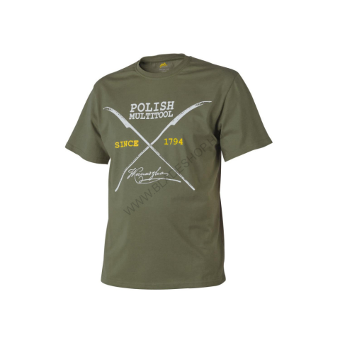 Helikon-Tex Polish Multitool póló - Olive Green (M)Alapvető ruhadarab, tartós és lélegző, kellemes tapintású pamut anyagból, szitanyomással készült mintával. Anyaga:100% pamut, 165g/m2 Mérettáblázat: