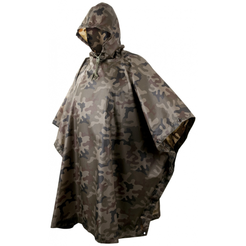 Helikon-Tex Poncho - PL WoodlandVízálló, gyorsan száradó poncho rip-stop poliészterből. Patentjai segítségével ujjak alakíthatóak ki rajta, vagy két poncho összekapcsolható. A kapucni állítható. A poncho nagy előnye, hogy könnyű és összehajtva nagyon