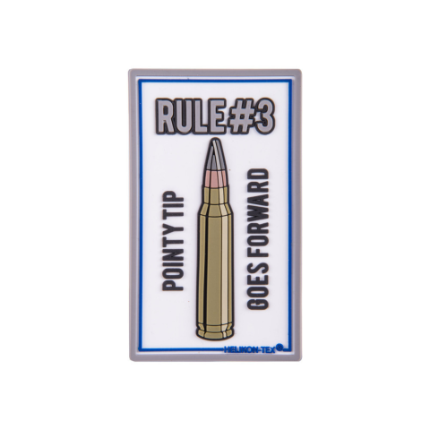 Helikon-Tex Rule3 Patch - PVC - WhitePVC patch a fegyverhasználati szabályok humoros bemutatásával. Tépőzárral rögzíthető ruhához, táskához, vagy más felszereléshez.Jellemzők:Tartós PVC anyagTépőzáras rögzítésMéret: 45 x 75 mmSúly: 13 g
