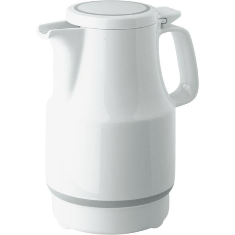 Fehér Helios Thermoboy hőszigetelt kancsó 600 ml űrtartalommal, masszív, fényes kemény műanyagból készült. Felnyitható fedéllel rendelkezik, és mosogatógépben 95 °C-ig mosható. Ideális vendéglátóipari üzemek számára.