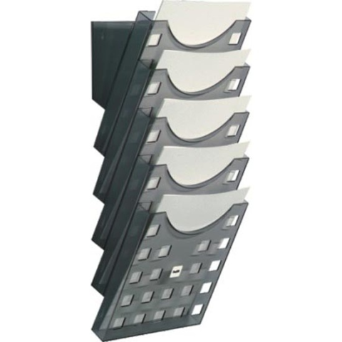 Helit Fali Prospektustartó: 5 Rekeszes A4 Dokumentumtartó Praktikus és elegáns fali prospektustartó 5 rekeszzel, ideális irodákba, recepciókra vagy várakozótermekbe. A4-es méretű dokumentumok tárolására tökéletes. A tiszta, áttetsző szürke design mo...